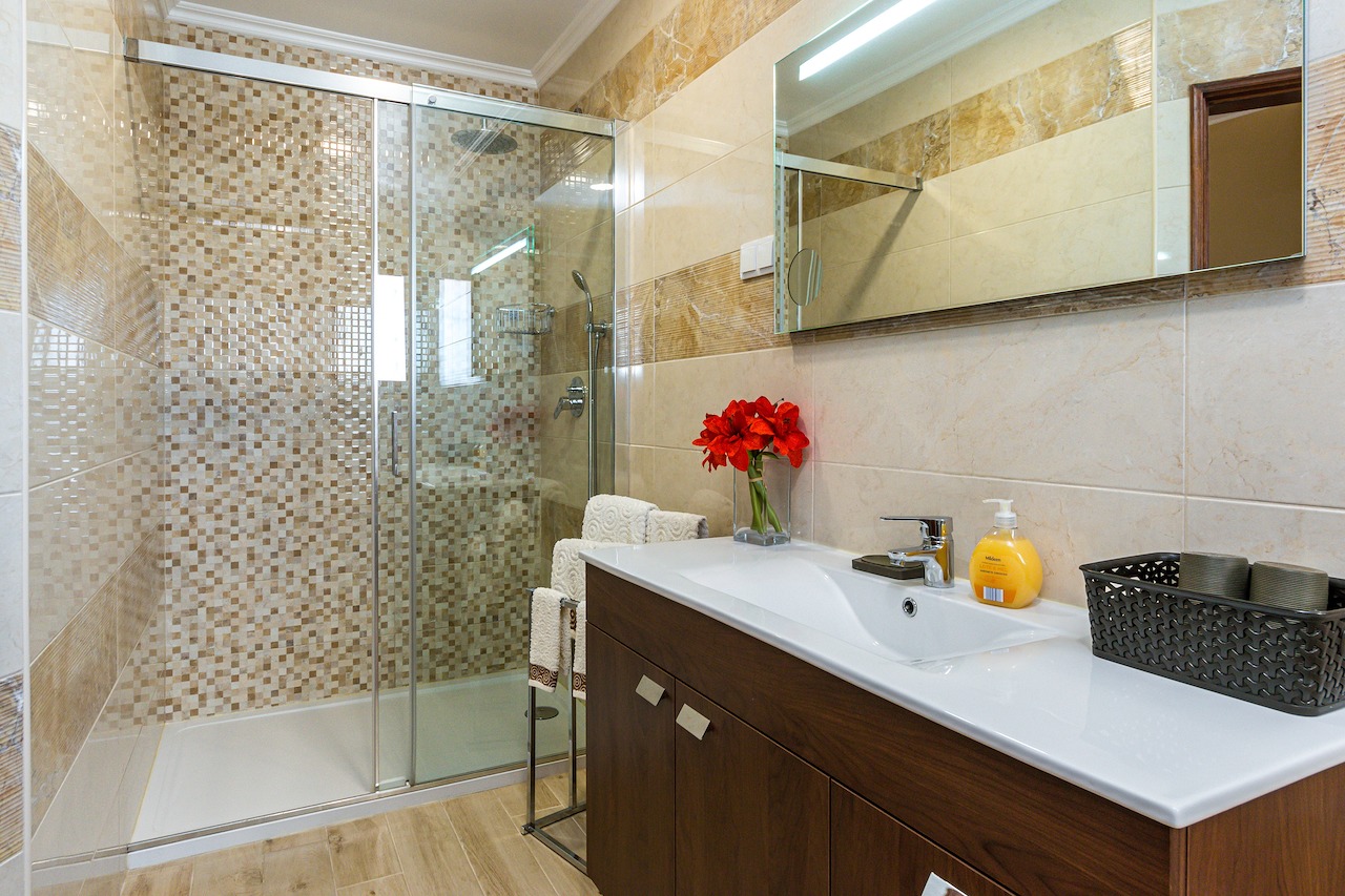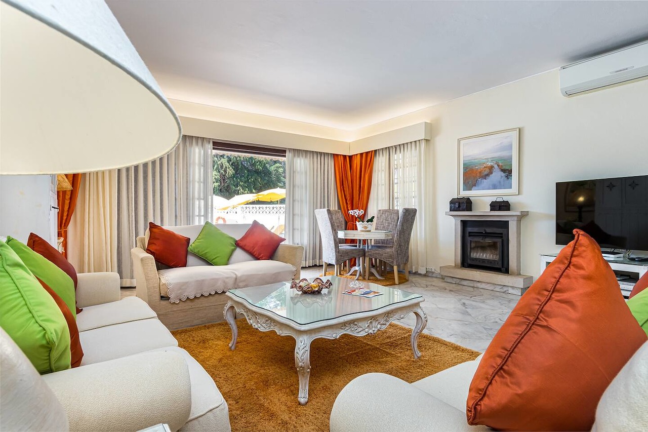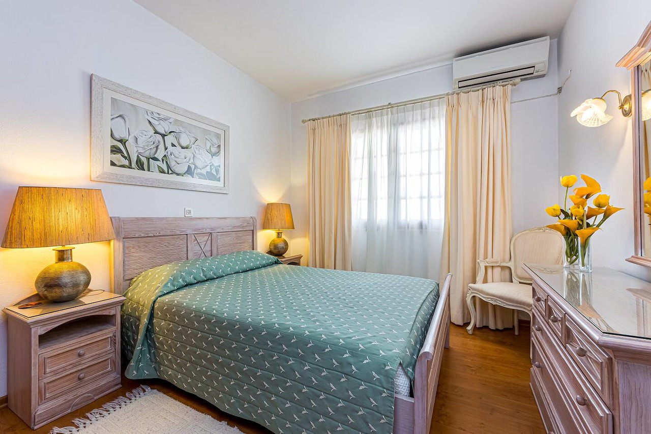 On the ground floor there is a twin bedroom with twin beds, full en-suite bathroom, wall safe and patio doors to pool and garden. The second ground floor bedroom has twin beds and a door to terrace and there is also a double bedroom, both of these bedroom share a full bathroom. Beautiful wooden floors are an attractive feature in all bedrooms.