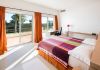 The simple sophistication of the décor lighting and furnishing in the villa add to the feeling of space and calm. An entrance hall leads to the ground floor rooms and the comfortable living room has a fireplace and spacious dining area for indoor eating. The fully fitted modern kitchen is equipped with dishwasher, microwave, coffee maker, toaster, juicer etc. There are three sets of patio doors form the lounge, giving access to the large semi-covered terrace and the lawn beyond. The poolside is extensive, providing plenty of room to spread out in the sunshine, enjoy the barbecue, rest in the shade, or take a refreshing dip in the rectangular pool.