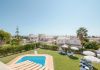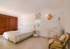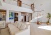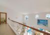 Overlooking the sitting room is a minstrels gallery which leads to the other two bedrooms, and a door to a huge private sun terrace. There is a large master bedroom suite with King size bed, en-suite bathroom with corner bath, shower and twin vanity units. This bedroom also has a door to the large sun terrace overlooking the garden, pool and sea. The other bedroom has twin beds and patio doors to a private sun terrace overlooking the pool and garden. It also has an en-suite shower room.