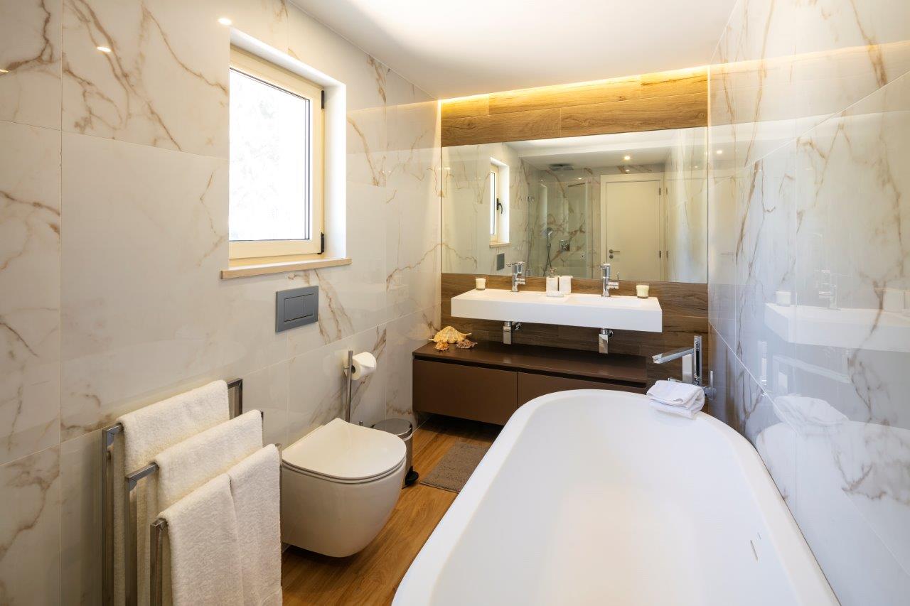 The accommodation comprises four bedrooms all with en suite facilities. On the ground floor there are two bedrooms (one bedroom with two twin beds that can be converted in a double bed and one bedroom with a double bed). On the first floor there are two double bedrooms, both with large sunny terraces.