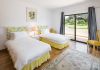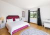 Villa Duque is a modern 3 bedroom villa in Quinta do Lago. It is a villa of attractive design, is built on 2 floors in a large landscaped garden. One of the interesting features of the house is the central garden with banana plant. Dining room with marble table the lounge is 2 steps lower and offers comfortable seating around the fireplace or towards the cable TV. Large glazed doors open onto the garden and pool terrace . The kitchen faces the indoor garden and offers dishwasher , washing machine, hob oven and two fridges. Also on the ground floor are two twin bedrooms sharing a bathroom. All bedrooms have individual air-conditioning units.