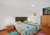 Bedroom 4, twin, with unit housing drawers and hanging space. Shower room with single sink vanity unit and toilet.