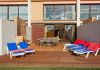 Spacious terrace with patio furniture, overlooking garden and pool area. Barbeque. Private parking.