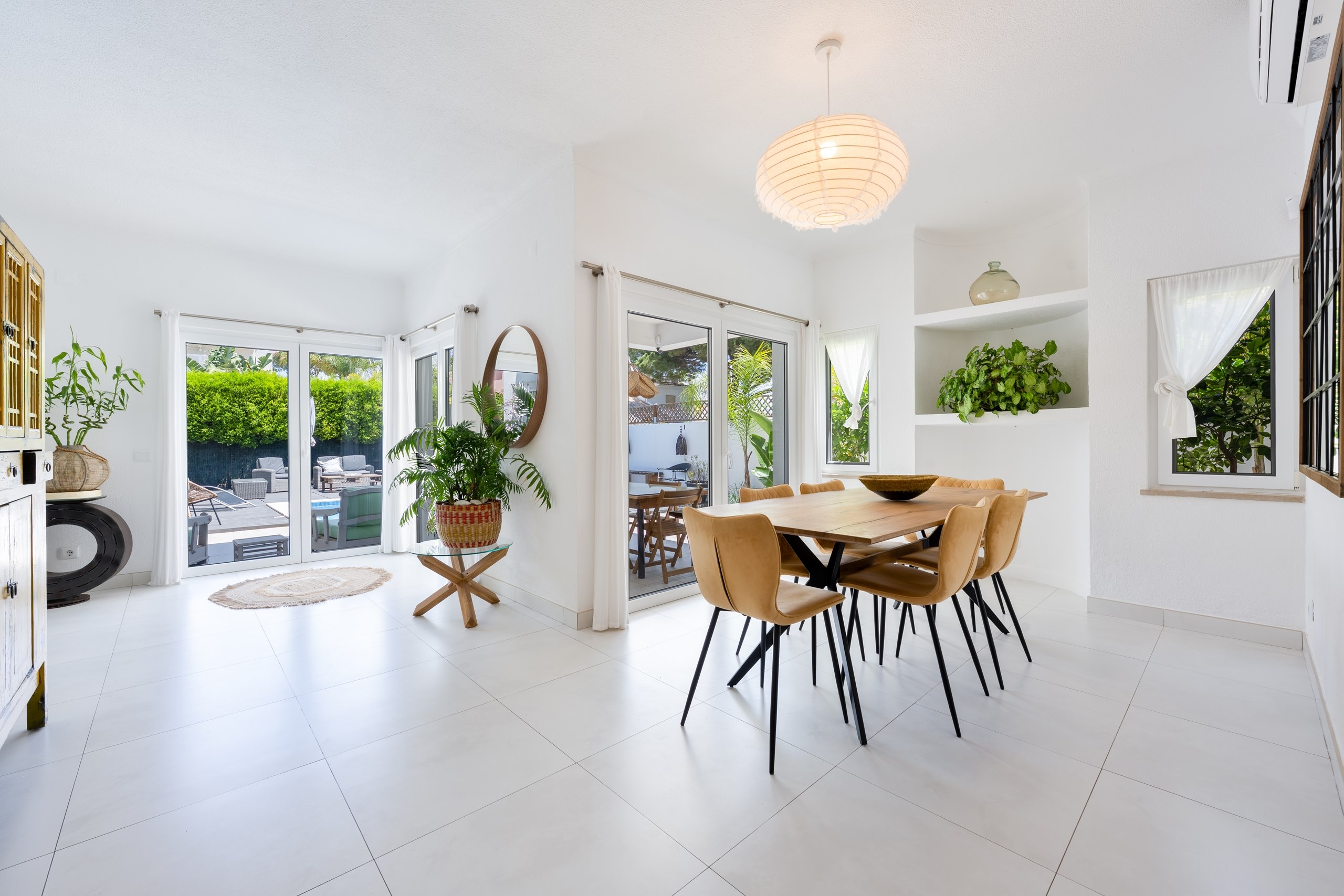This refurbished 4 bedroom villa in a quiet Vilamoura street on a large plot near golf courses and amenities. t features a bright, open-plan layout connecting the lounge, dining area, and fully equipped kitchen, along with a separate laundry room. A guest toilet is conveniently located on the ground floor, just off the entrance hall or at the bottom of the stairs. Air conditioning throughout.