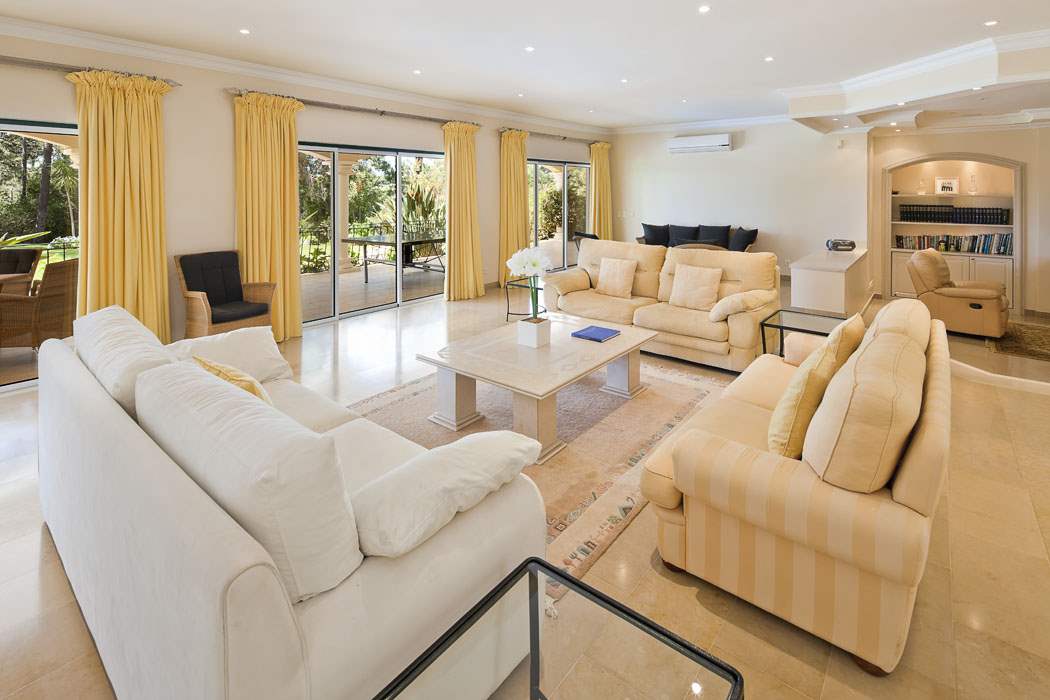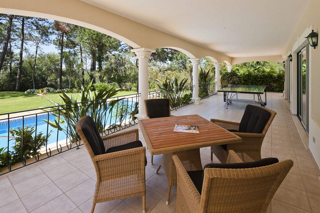 Villa Lucas benefits from lovely views of the 17th of the Quinta do Lago South course, and extensive lawn gardens, great for the kids to play on. Adjacent to the villa dining area is a superb shaded terrace with dining table and integrated charcoal BBQ, which leads to a spacious shaded terrace that overlooks the pool. From here, steps lead down to the swimming pool, which measures approximately 11 x 5 metres with steps entry. The pool can be heated for a weekly supplemental charge. At the front of the house there is plenty of space for off-road parking on the villa driveway, protected by the electric entry gates.