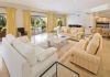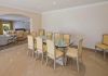 Large entrance hallway with steps leading down to the living room, furnished with comfy sofas and with a separate TV area with armchairs and a flat screen TV with cable channels and DVD player. Wi-Fi internet connection. Three sets of patio doors lead to the shaded terrace overlooking the pool. Separate dining area with doors leading to the exterior BBQ terrace.