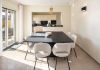 With an open plan to the dining area and lounge is the fully fitted kitchen with, fridge, oven, microwave, hob, coffee maker and dishwasher. This whole living area and the outside area are equipped with bluetooth Hi-Fi music system to create a desirable ambiance.
