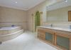 This very large and beautiful villa offers excellent, spacious accommodation on two levels. On the ground floor, the open-plan lounge/dining room has comfortable sofas and armchairs with a large television featuring cable channels and DVD player. The dining area has a very large dining table and chairs.