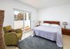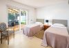 Upstairs, the villa features two spacious double bedrooms (1.6m x 2m beds), both with built-in wardrobes and contemporary en-suites—one with a bath and one with a shower. Each room has French doors opening onto a private balcony, offering peaceful views over the landscaped gardens and golf course.