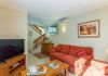 The accommodation is well furnished and comfortable throughout. The lounge area has two comfy sofas and features satellite TV and a CD/DVD player. Five steps take you up to the modern kitchen which has a breakfast bar and is fully fitted and equipped with a dishwasher, microwave, oven, hob, toaster, electric kettle and washing machine. The master double bedroom is located on this floor and has an en-suite bathroom. There is twin bedroom with a separate shower room upstairs. All bedrooms and the lounge/dining area have air conditioning available on request at a weekly supplement. Central heating is available throughout for the winter months (extra charge).